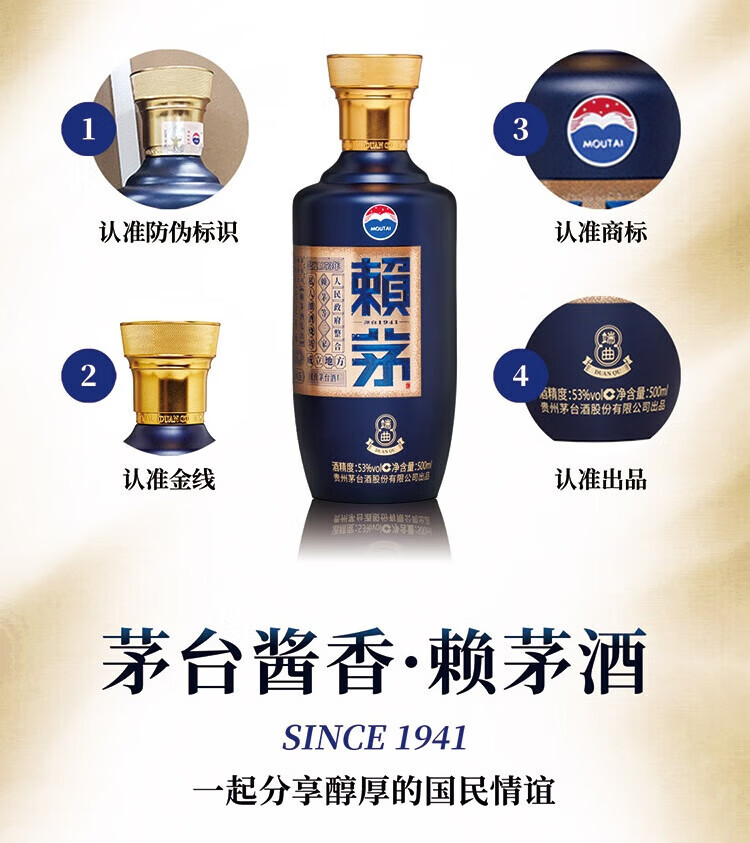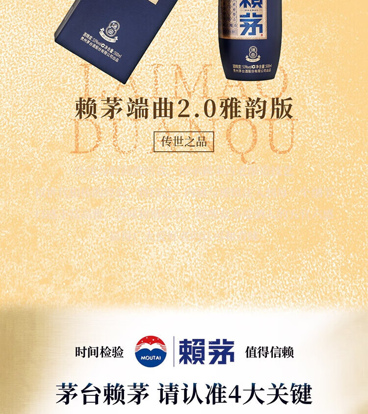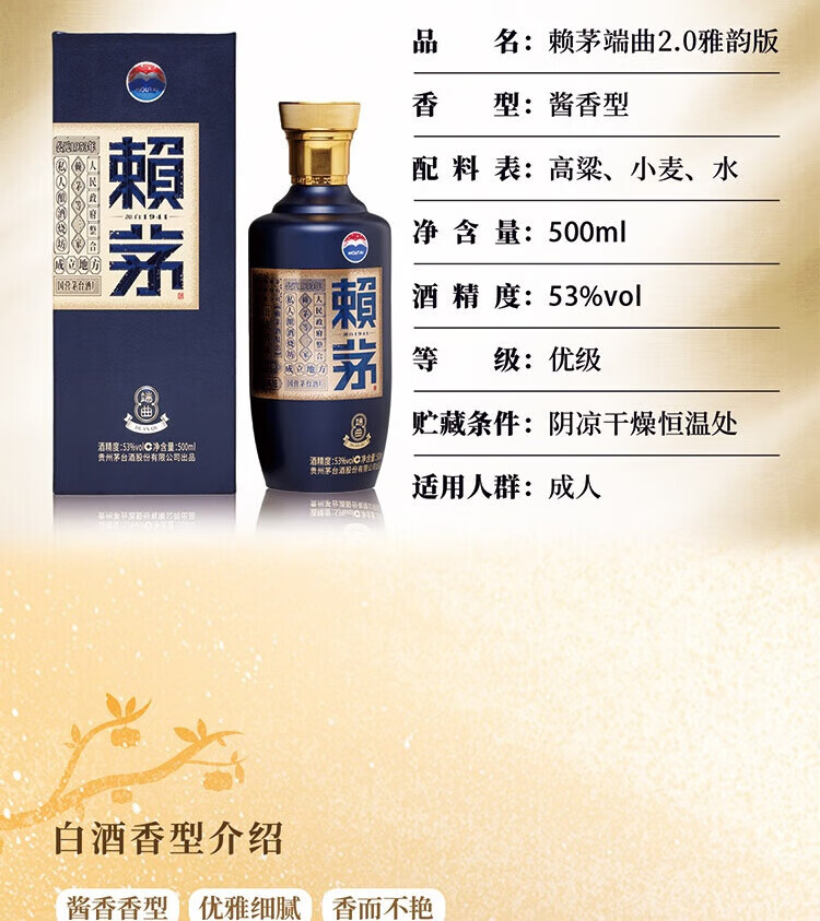 赖茅端曲2.0 酱香型白酒 53度 500ml 单瓶礼盒装