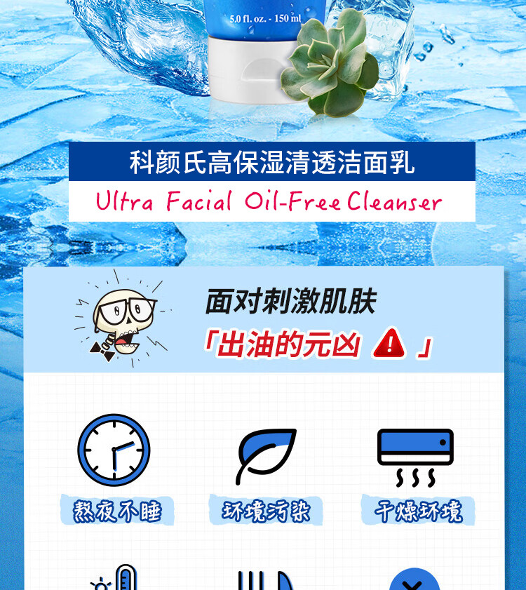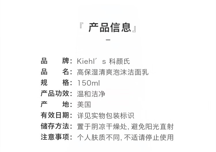 科颜氏高保湿清爽泡沫洁面乳150ml 清爽不紧绷